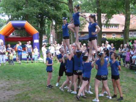 Auftritt einer Cheerleadergruppe mit ihren Sprüngen und